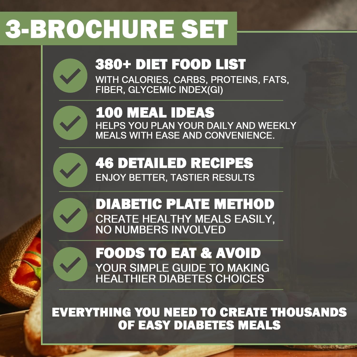 Complete Diabetes Food List & Meal Planner: Our type 2 diabetes food chart brochures provide a thorough nutritional analysis of a wide range of foods, including snacks, beverages, and meal plans, tailored specifically for diabetes management. Perfect for those seeking a detailed diabetic food list, pre diabetic food list, or diabetic diet food list.