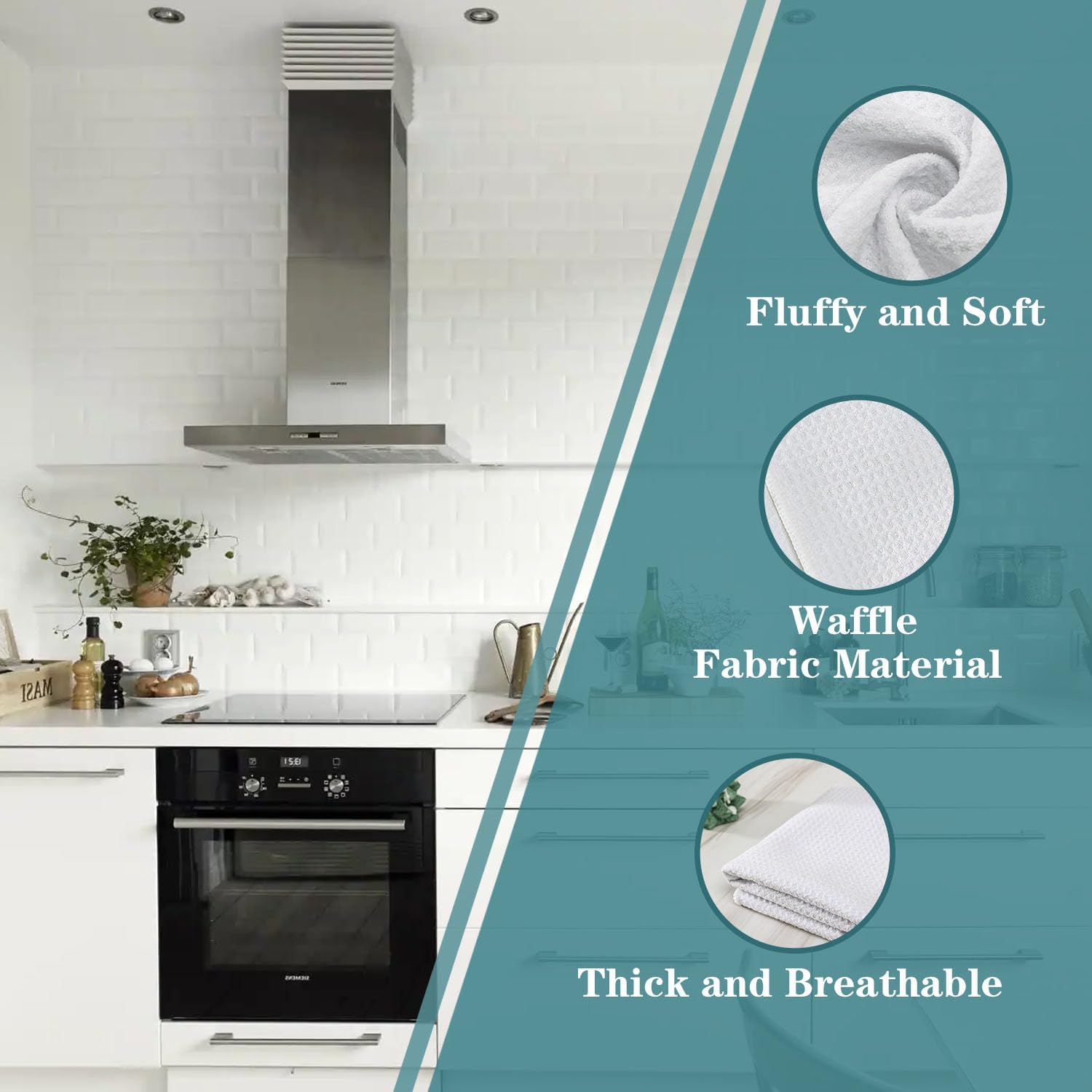 SUPERIOR MATERIAL:Our kitchen towels are made of high quality microfiber waffle weave that is highly absorbent, fast drying.It is upgraded honeycomb structure whic,Can be used for drying hands and dishes, sopping up a quick mess, cleaning counter tops.