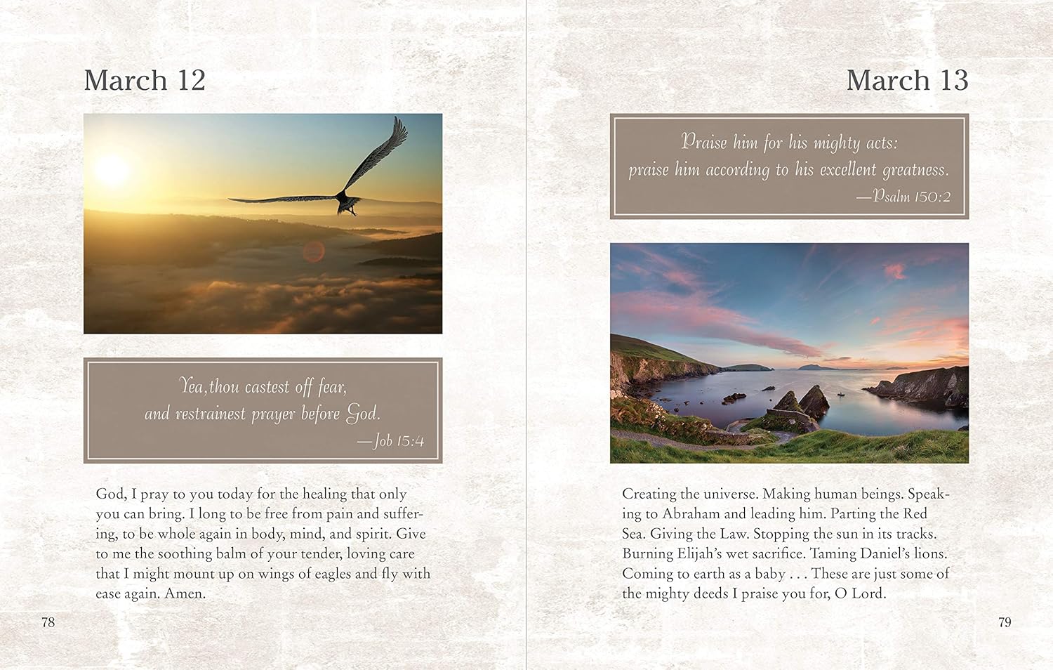 Prayers for Strength and Healing features prayers and blessings that heal the soul and provide strength in challenging times. A prayer for every day of the year.This book draws from the Bible, great Christian thinkers, and traditional prayers.Prayers and scripture provide strength and comfort for a variety of common situations, such as illness and financial hardship.Ribbon bookmark attached so readers can quickly jump right back in each day.Beautiful full-color photographs are sprinkled throughout the interior.The padded hardcover of features a lovely charm.384 pages, with gilded edges.