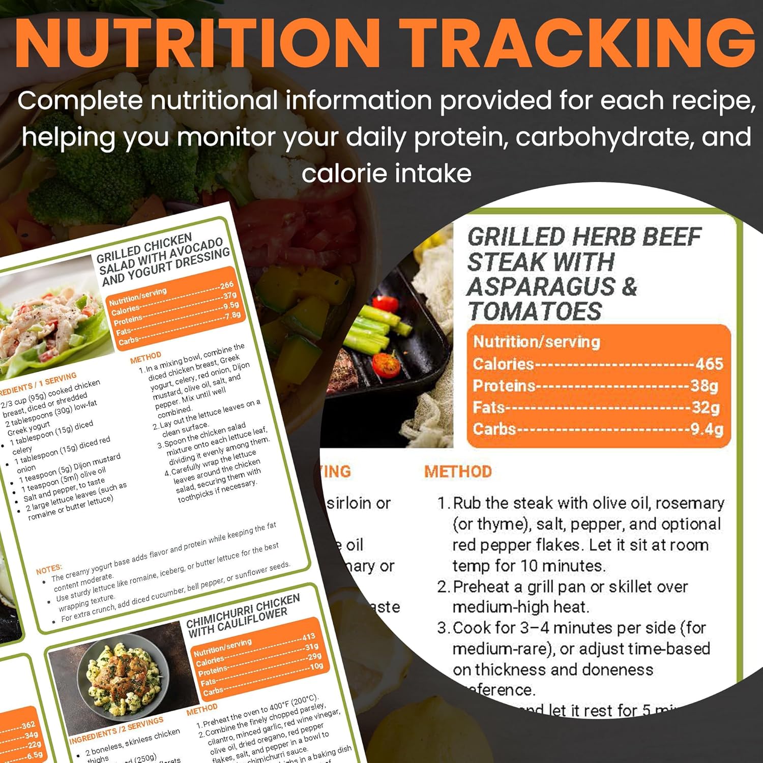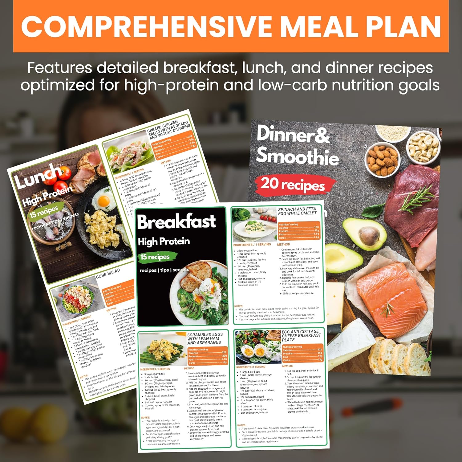 COMPREHENSIVE MEAL PLAN: Features detailed breakfast, lunch, and dinner recipes optimized for high protein and low carbohydrate nutrition goals