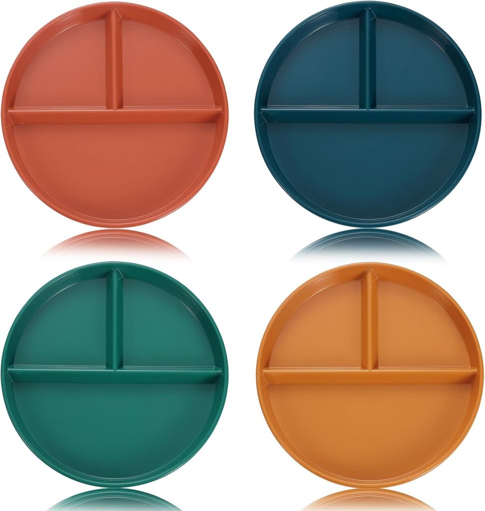 Portion Control Plates 9 Inch (4 Pack) Divided Plate Adults Plastic 3 Compartment Dinner Plate Perfect for Bariatric Diet Weight Loss Healthy Eating Reusable 3 Section Lunch Tray
